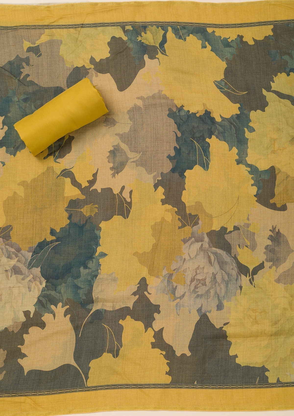 Mustard Zariwork Art Silk Unstitched Salwar Suit