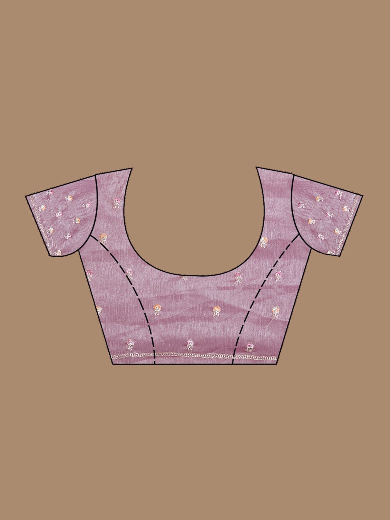 Onion Pink Saree in Tissue fabric The Saree is elevated with Zariwork (Gold) embroidery It comes with an Unstitched blouse Comes with the Koskii promise of premium quality.